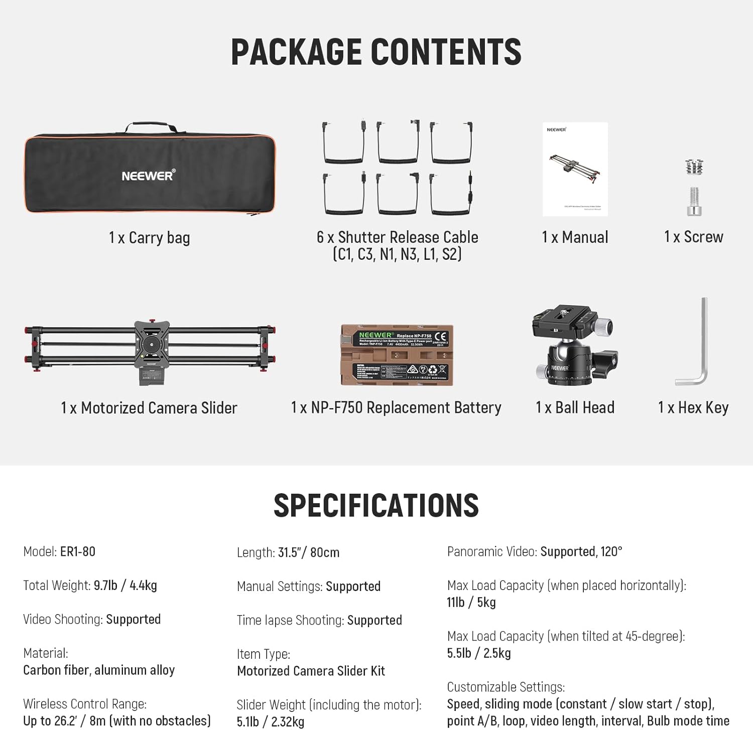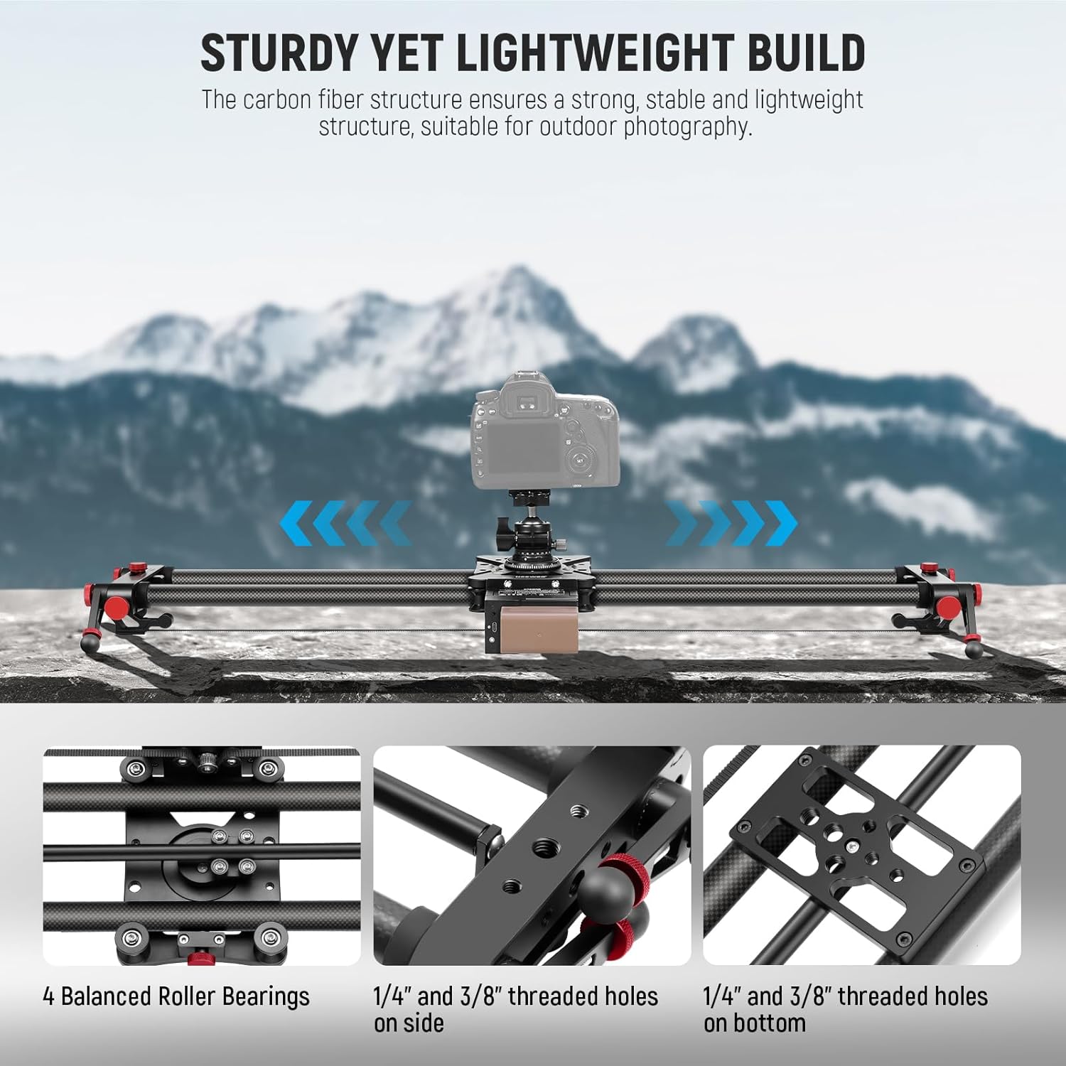 Discover the NEEWER 31.5″/80cm Motorized Camera Slider, a revolutionary tool that transforms your video shooting experience. Designed for professional creators, this versatile slider offers smooth and automated camera movements, ensuring exceptional footage every time. With a robust yet lightweight carbon fiber build, it’s perfect for both studio and outdoor settings.